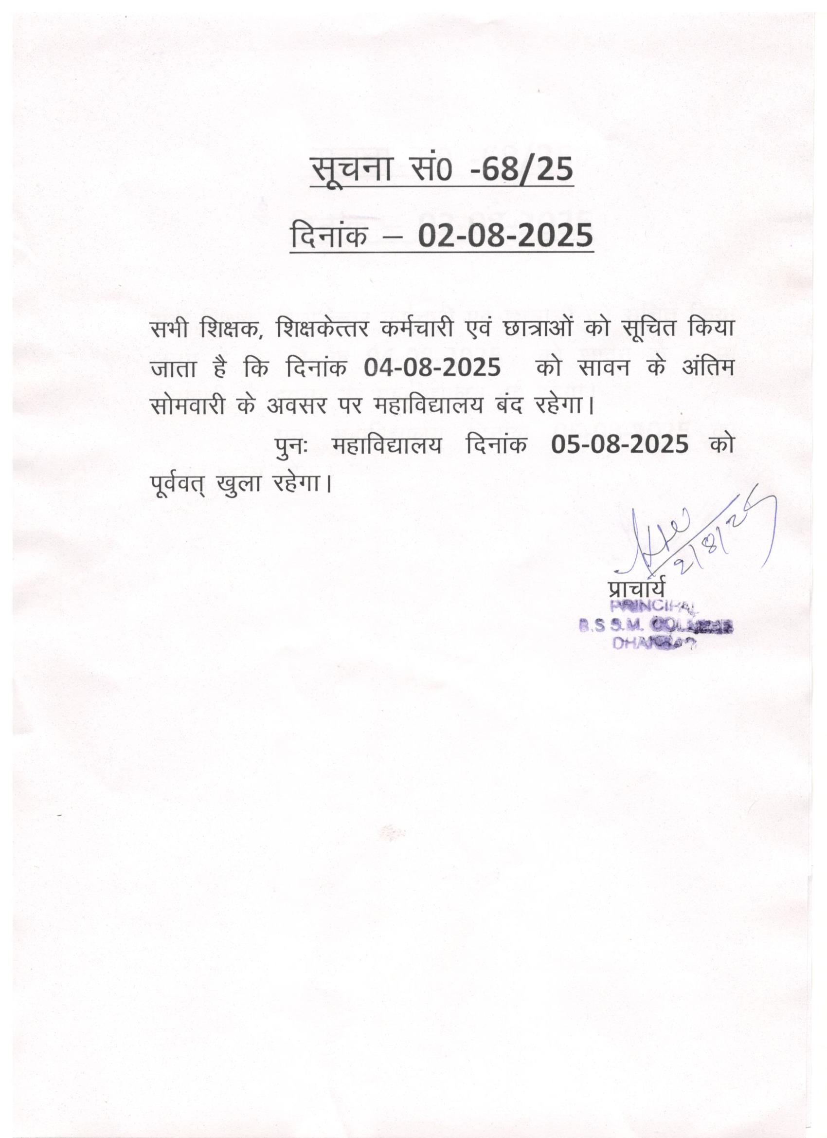 🔹 NOTICE NO - 78/2025 DATE ON - 20/08/2025 11th & 12th Students Scholarship for Ranked Students Sponsored By Akash Coaching Centre. Please follow the notice it.21-Aug-2025